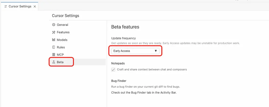 升級Cursor,並保證版本高於0.47