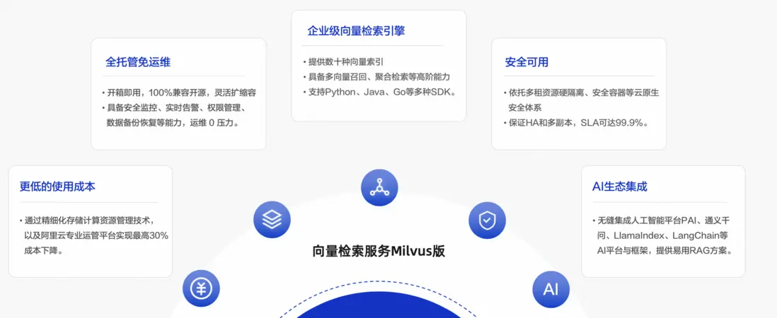 阿里雲向量檢索服務Milvus版是一款雲原生向量檢索引擎,實現了高可用、高性能、易擴展的特性,適於處理海量向量數據的實時召回。支持數據分區分片、持久化、增量攝取、混合查詢等高級功能,同時提供了直觀的API和多語言SDK。