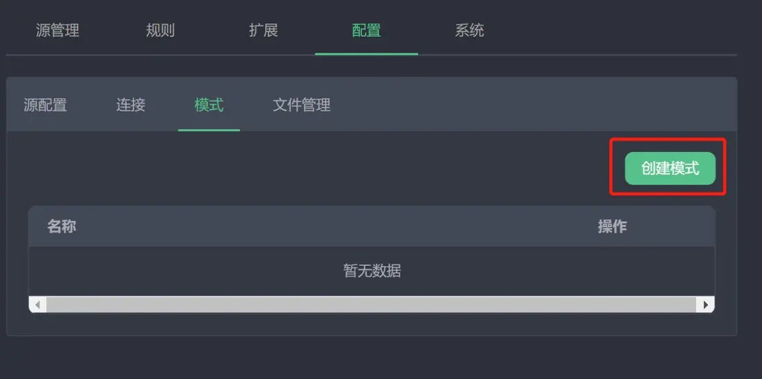 點擊提交。在模式列表中應當能夠看到新創建的模式。後續可使用操作欄中的按鈕進行修改或刪除的操作。
