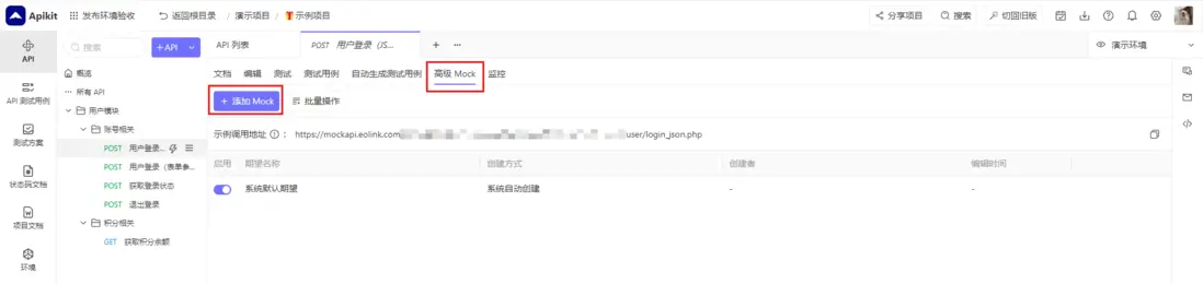 Eolink Apikit 強大的自定義請求校驗與響應,便於前後端對接和集成測試等場景如果自動生成的 Mock API 無法滿足需求,Apikit 還提供了高級 Mock,設置某些請求參數作為觸發條件並返回對應的結果,讓 Mock API 有了更廣泛的使用場景,比如更真實地模擬後端來完成集成測試。