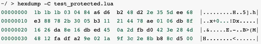 從上面的字節碼看,已經不包含源代碼,只包含函數名稱及字符串。不過 Lua 字節碼非常容易被 luadec / unluac 等工具反編譯,而且反編譯得到的 Lua 代碼幾乎與源代碼一致。