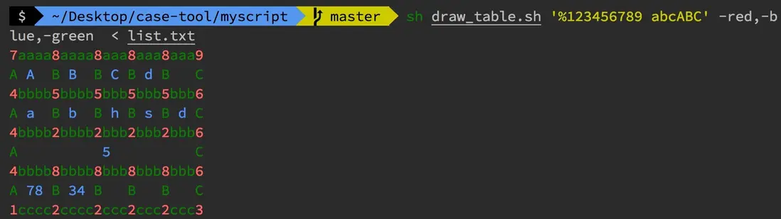 \t pipo : echo -e A\\tB\\na\\tb | draw_table.sh [style] [colors]