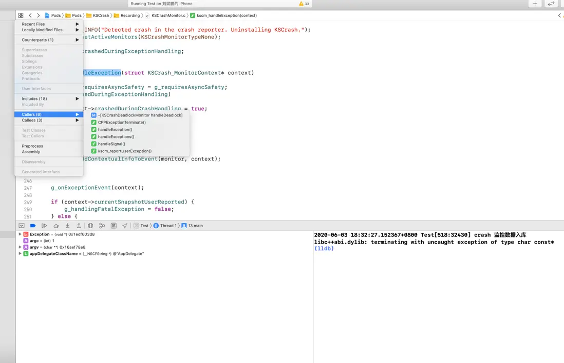 5 Test 0x102fe592c -[ViewController testMonitorCrash] + 22828 (ViewController.mm:58)