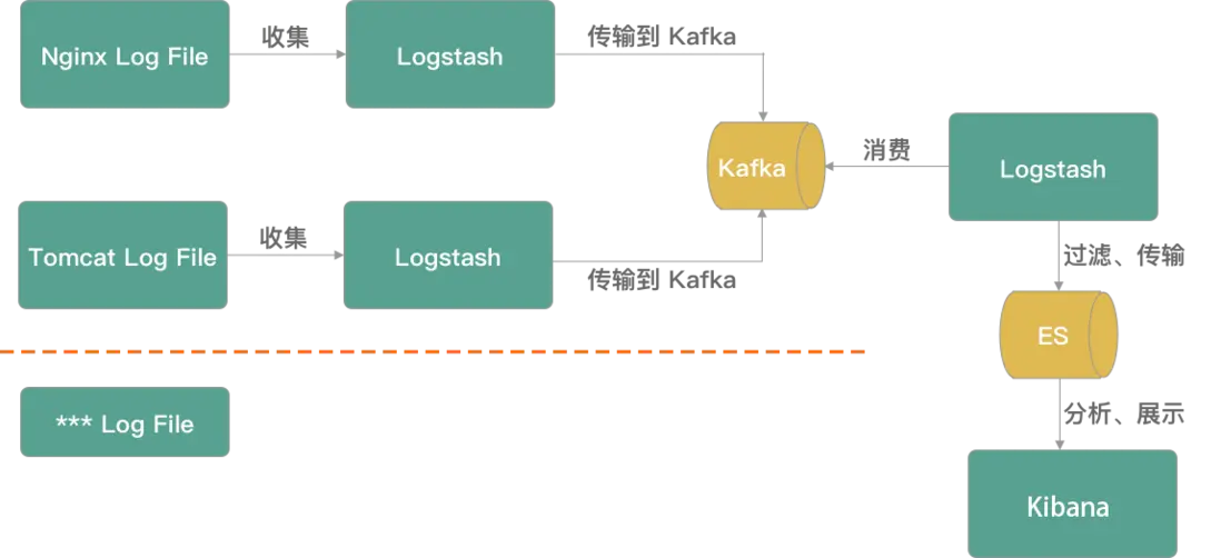 - 這個設計不但性能好、耦合低,還具備可拓展性。比如可以從 n 個不同的 Logstash 上讀取傳輸到 n 個 Kafka 上,再由 n 個 Logstash 過濾處理。日誌來源可以是 m 個,比如 App 日誌、Tomcat 日誌、Nginx 日誌等等