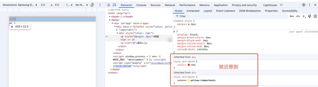 這裏雖然important的權重更高,但最終繼承的還是最近的屬性值。