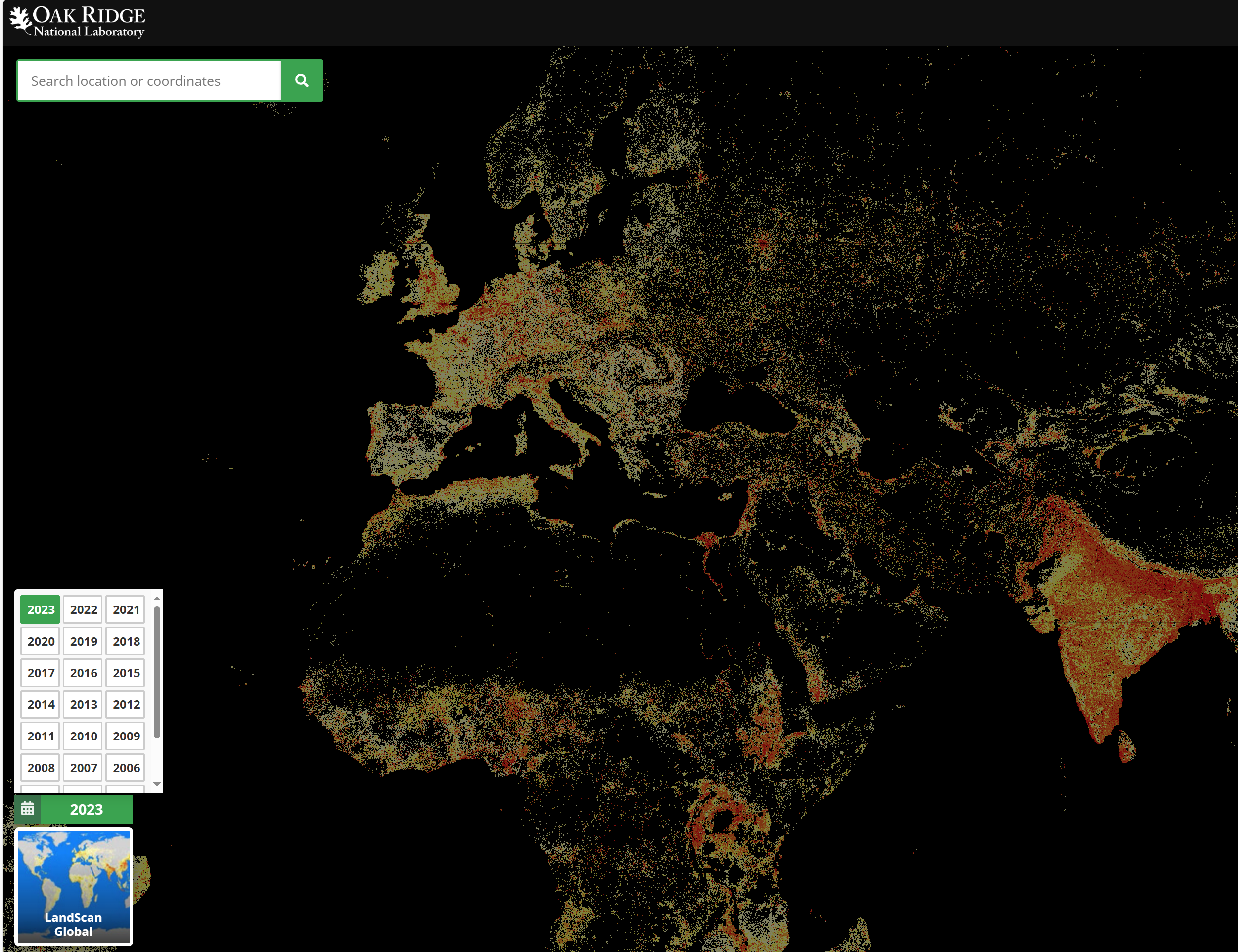 LandScan是美國橡樹嶺國家實驗室開發的全球動態人口數據,其空間分辨率為30"。這一數據的下載需要使用教育郵箱註冊。如下圖所示。