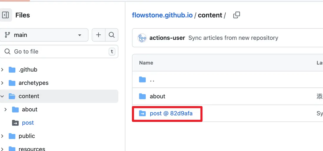主倉庫僅保留靜態網站生成器的相關配置,果斷移除了所有文章內容。如此一來,主倉庫更加簡潔,專注於網站生成的核心配置工作,為後續的自動化部署奠定堅實基礎。 - 文章倉庫: