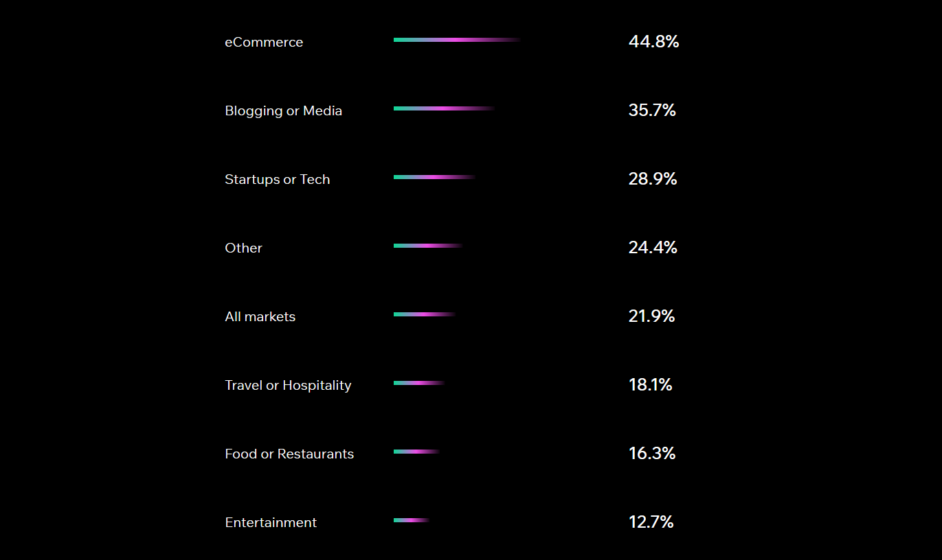 That said, it’s clearly not all about the money. The second most common usage of Rapid Web Development was blogging and media, closely followed by tech. Having an online presence is invaluable across countless sectors, and website builders remain a popular way of achieving that.