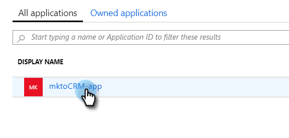 1. 在Active Directory的​ App registrations ​標籤下,按一下您要設定許可權的應用程式。