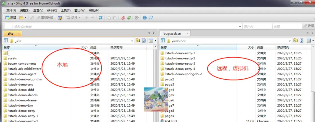 遠程服務器的部署主要依賴於大家個子使用的服務器類型,我的手裏有一台雲虛擬機,通過FTP的方式進行部署即可。如下;