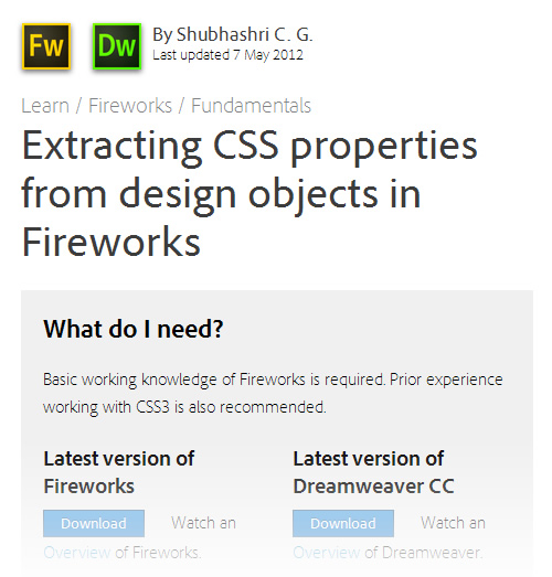 - “Extracting CSS Properties From Design Objects in Fireworks,” Shubhashri C. G., Adobe Fireworks Tutorials