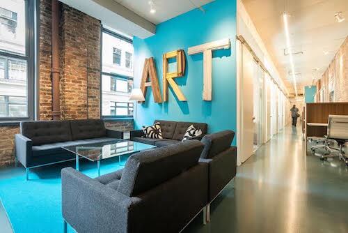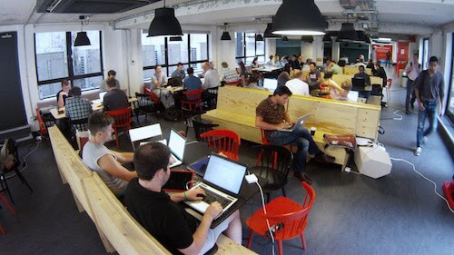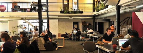 - Description: A huge open space with simple decor, with private offices, conference and event facilities and lectures and workshops. Workers also get “Tuesday treats,” when homebaked goodies are handed out at 3:00 pm every Tuesday, as well as a host of other perks.