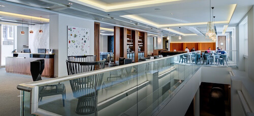 - Description: This stylish coworking office offers membership to small startups that are looking for office space and are eager to grow their business. With an outdoor work area, free CalTrain shuttles and regular “wine and design” events, it’s a beautiful space adorned with trees and a range of working environments.