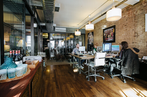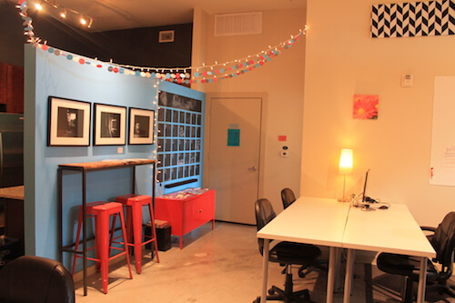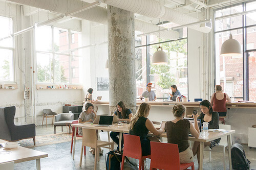 - Description: Offering 1,000 square feet of space and a napping loft, this stylish, productive workspace is furnished with a mix of large tables, desks and soft seating, so you can work where and how you want to. With a range of community activities and great support for freelancers and small-business owners, this space encourages collaboration and networking in its airy space.