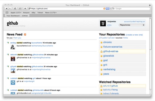GitHub has recently helped establish Git as a great version control system, providing a beautiful front end for many large projects, such as Rails and Prototype. However, Git isn’t as easy to pick up as CVS or SVN, so it’s much harder to use for a beginner.