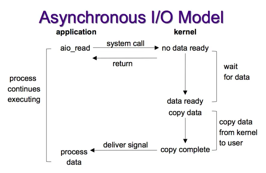 - 優勢:完全非阻塞,應用程序可以在I/O執行期間繼續進行其他計算,提高了程序的整體效率💡。