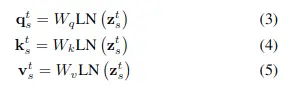 在最後一種情況下,將由這兩種注意策略獨立計算出的兩個token \( z_s^{ST^t} \)和\( z_s^{MS^t} \)饋送到一個注意力融合層u()進行信息融合,\( \mathbf{Z}_{s}^{t}=u\left(\mathbf{Z}_s^{S T^{t}}, \mathbf{Z}_s^{M S^{t}}\right) \)。