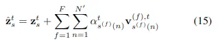 其中運動嵌入\( m_s^{t, t^\prime} \)是根據存儲在壓縮視頻中的運動位移和RGB residuals確定的,詳細步驟可以查看論文。