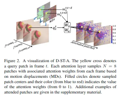 上述D-ST-A是一個時間上的注意力機制,而D-MS-A是一個空間上的注意力機制,用於編碼同一幀上的注意力。