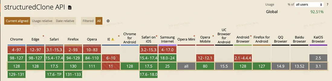 從上面的示例中能看出,structuredClone 支持了很多中數據類型,基本類型和普通對象都支持