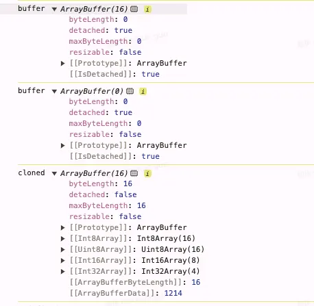 const cloned = structuredClone(buffer, { transfer: [buffer] });