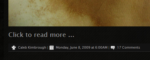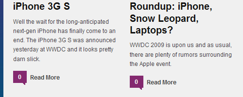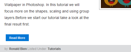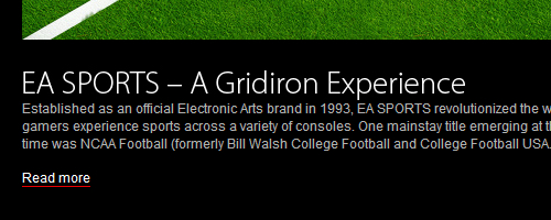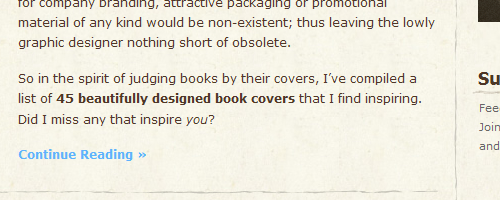 By far the most popular method of presenting “Read more” links is with simple text. This is usually done with a link that is underlined, bolded, brightly colored and sometimes marked with a > sign. Making text links on your website easily distinguishable from generic links is important and sometimes overlooked by designers.