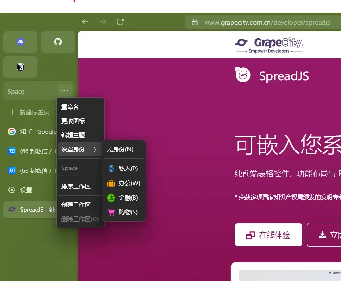 3. Spaces 工作空間:隱私隔離,比火狐「容器」更實用