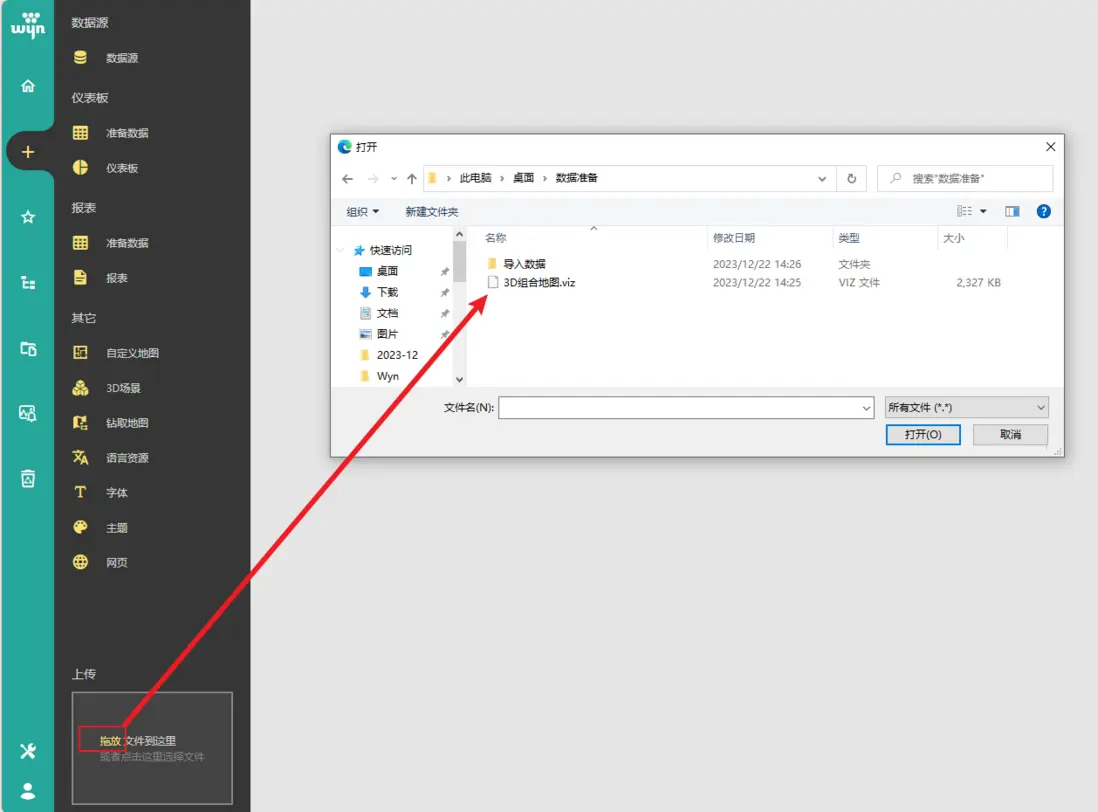 在Wyn商業智能中上傳3D組合地圖.viz插件包。