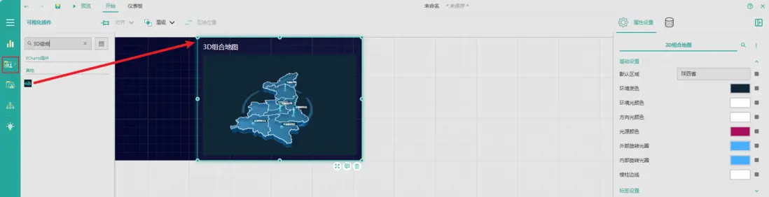 在儀表板設計器中添加我們剛剛上傳的3D組合地圖插件,如下: