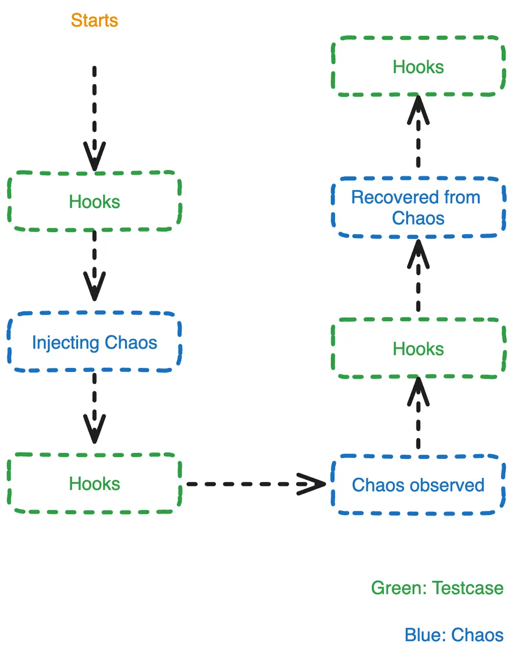 構建一個混沌測試需要投入不少精力:通常注入一個故障,其中會涉及到多個步驟,例如注入故障,觀察到故障發生,等待服務完全恢復等。通過對這些步驟進行抽象,我們可以做到實現注入一個故障,測試多個不同的場景。