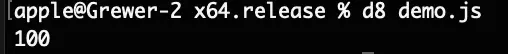 1. 執行指令 d8 , 之後可運行 js 代碼,就像 Chrome 的控制枱那樣: