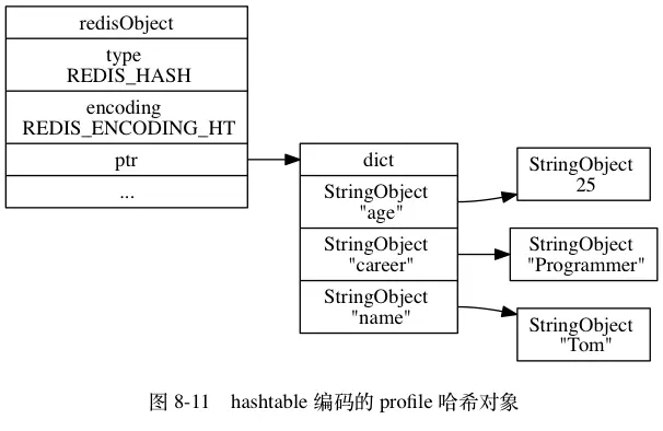 如果上述例子的底層存儲方式是 hashtable,那麼對象結構會如圖所示: