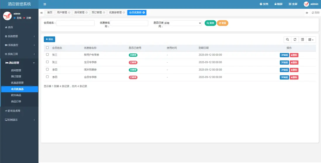 這是一個基於現代Web技術棧構建的全棧酒店管理系統,旨在為酒店行業提供完整的數字化解決方案,通過技術創新提升酒店運營效率和客户體驗。系統採用前後端分離架構,結合了成熟的企業級框架和現代化的用户界面設計,為酒店運營管理和客户服務提供了強有力的技術支撐。