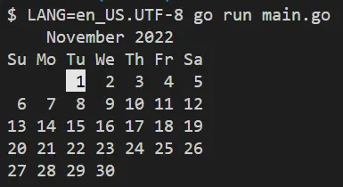 $ LANG=en_US.UTF-8 go run main.go