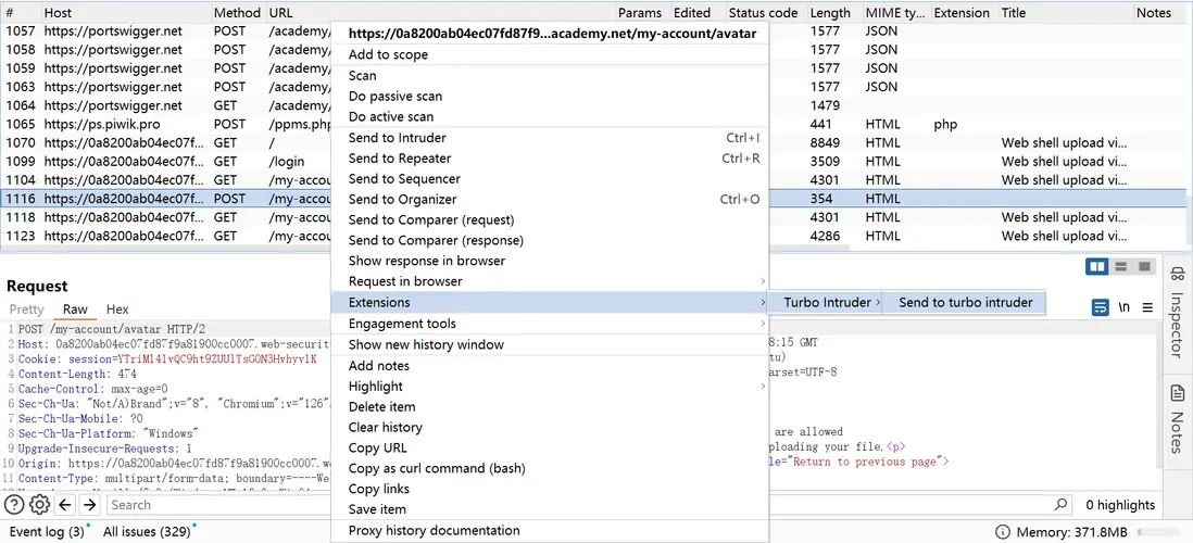 將上傳文件的post請求發送到Turbo Intruder中