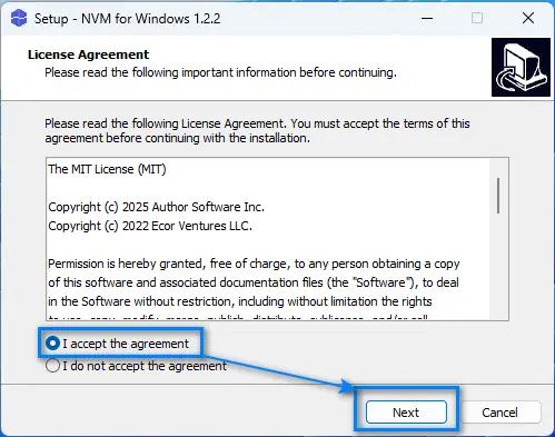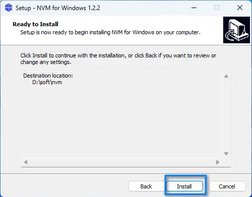 3. 填寫 nvm 的安裝目錄,例如:D:\soft\nvm,點擊 “Next”