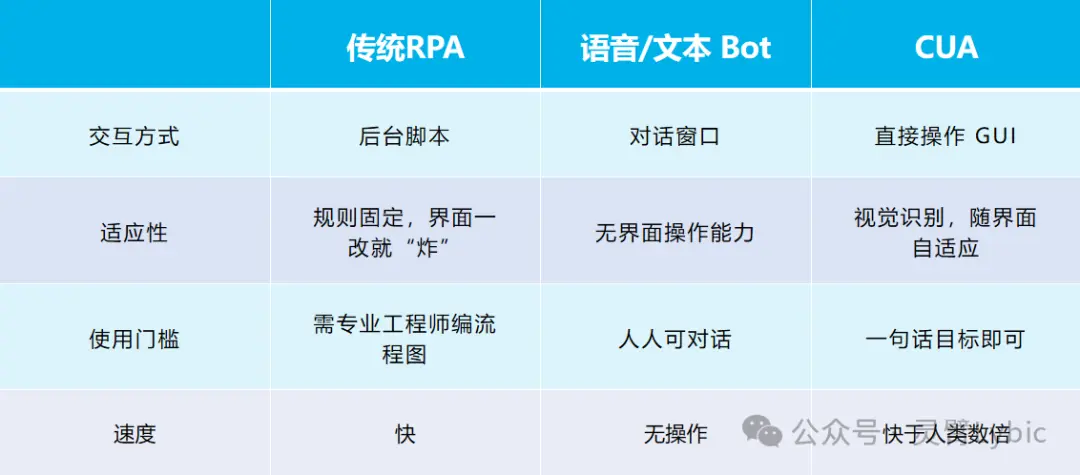 一句話:RPA 像“提線木偶”,CUA 像“有腦子的實習生”。