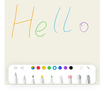 接入手寫套件後,可以在應用中創建手寫功能界面。界面包括畫布和工具欄兩部分,畫布部分支持手寫筆和手指的書寫效果繪製,工具欄部分提供多種筆刷和編輯工具,並支持對手寫功能進行設置。接入手寫套件後將自動開啓一筆成形和報點預測功能,無需再單獨接入。