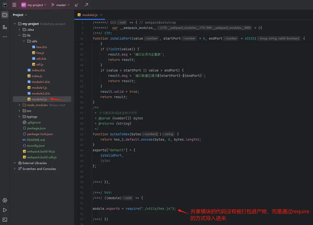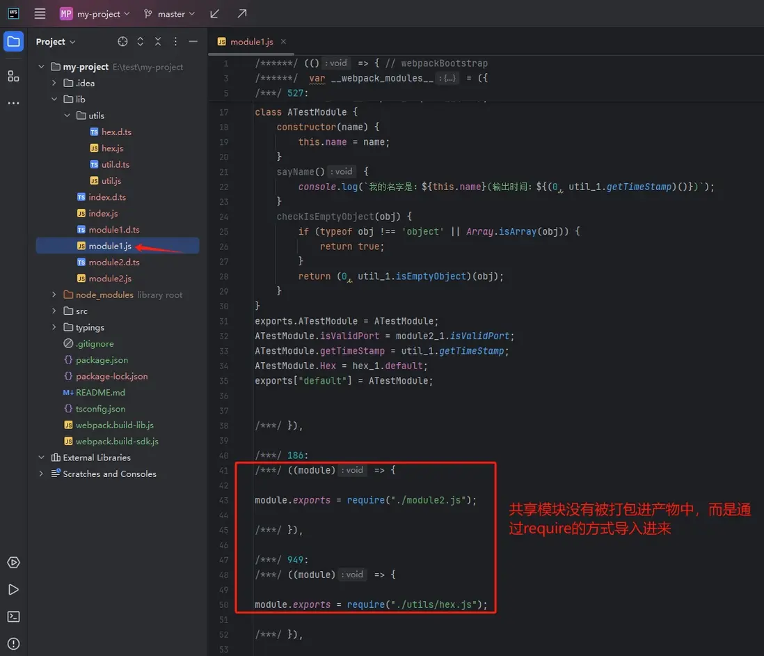 • 多個模塊共享公共模塊打包:"build:lib": "webpack --config webpack.build-lib.js"