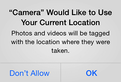 These are the familiar pop-up screens stating that the app “wants to use your current location.” These screens should be used in conjunction with app settings or user profiles.