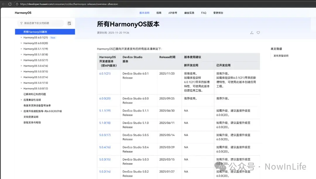 最低支持的 HarmonyOS 版本選擇了 5.1.1(19),研究了版本變遷列表,這是 HarmonyOS 5 最新的版本,既然都用了 HarmonyOS 5 系統,那升級到最新版也是不錯的選擇吧😄。
