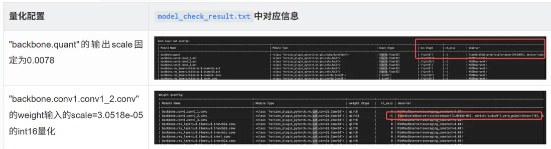 因此,若用户的模型中存在配置 fix\_scale 的算子,fix\_scale 的算子和相應配置可以通過 model_check_result.txt 獲取,為確保量化配置能夠對齊舊版本,必需按照上文 3.2 章節所闡述的適配規則和操作步驟,手動對 fix\_scale 的配置進行調整與適配,以使其符合新模板的要求。