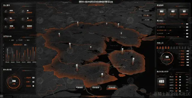 圖撲應用自研 HT for Web 產品搭建輕量化 GIS 智慧城市,一屏覆蓋城市運營、文化旅遊、城市治理、災害應急、智慧環衞、疾病防控等模塊。藉助先進的 HT 可視化技術,將不同領域的數據資源和信息系統進行聯合,打破信息孤島,實現數據的互聯互通。為未來城市生活描繪了一幅更加智能、高效、環保的藍圖。