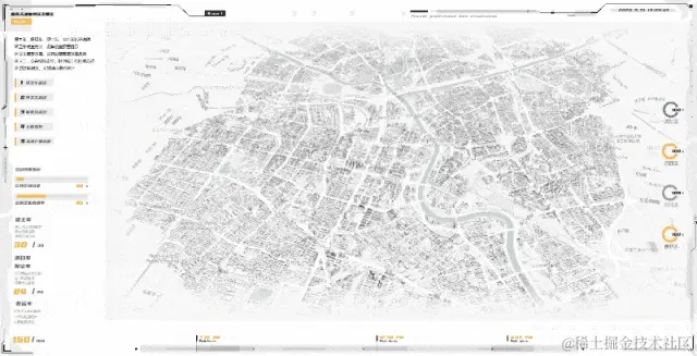 HT for Web GIS 技術的定位在於運用產品強大的可視化技術,將地理信息系統(Geographic Information System,GIS)的數據進行豐富的可視化展示。支持對不同地圖瓦片服務或數據、傾斜攝影數據以及城市建築羣等不同的 GIS 數據的加載,同時結合 HT 矢量看板使得 UI 和 3D 無縫融合。