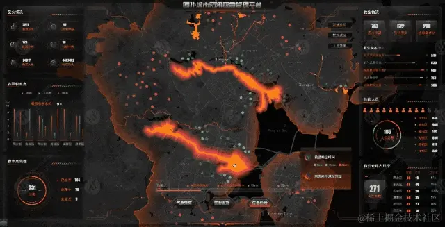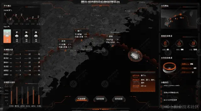 自然災害發生時需要時刻進行監控,有效進行搶險救災調度。密切關注天氣變化,及時做好分析和播報,是可視化界面的職責所在。